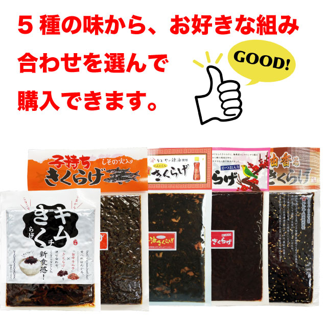 きくらげ 佃煮 4袋セット 5種から選べる ラー油きくらげ 子持ちきくらげ(ししゃもきくらげ) 梅きくらげ ごま油きくらげ キムチきくらげ ご飯のお供 送料無料
