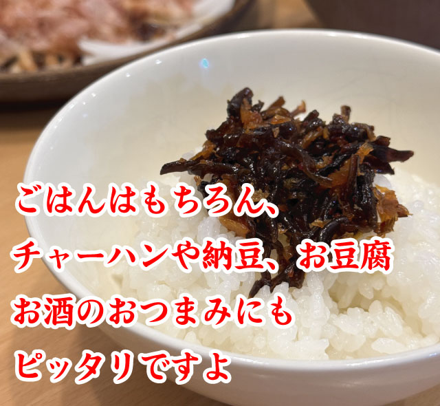 - ご飯のお供に最高です。新米にも合います。我が家の食卓には欠かせません。いつも早々のご対応ありがとうございます。