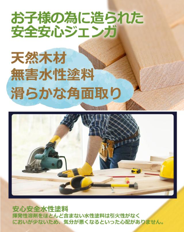 【知育おもちゃ】ブロックは子供にも優しい天然木を使用ジェンガとしたり、積み木にしたりなど楽しく組み立てることもでき、子供の想像力・創造力が広がります。加えてゲームの中で論理的な思考を養うこともできます。