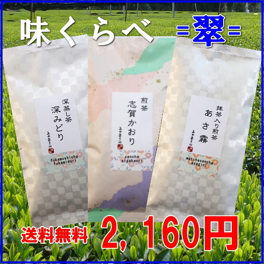 【送料無料】味くらべ3種セット=翠=(みどり) 各100g入り【お試しパック】煎茶 深蒸し茶 抹茶入り煎茶