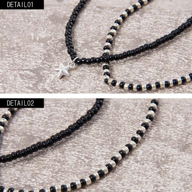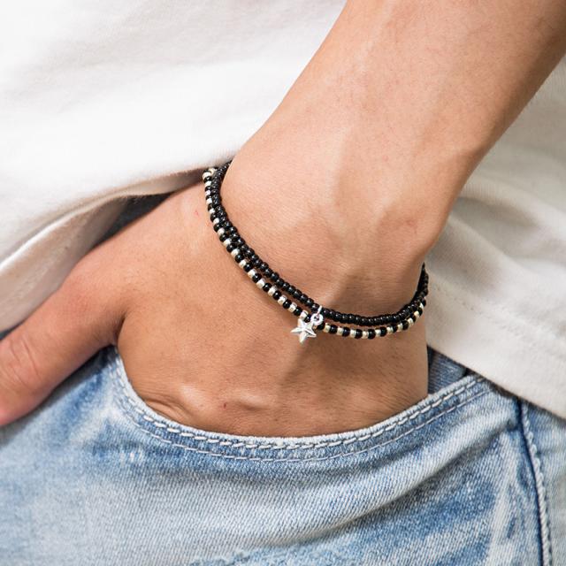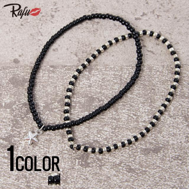 ブレスレット メンズ Rafu【ラフ】スターチャームビーズブレスレット2本セット 全1色即日発送【ブレスレット メンズ スター チャーム ビーズ シルバー ブラック 2本セット レディース ユニセックス BITTER系 ビター系】 プレゼント ギフト バレンタイン