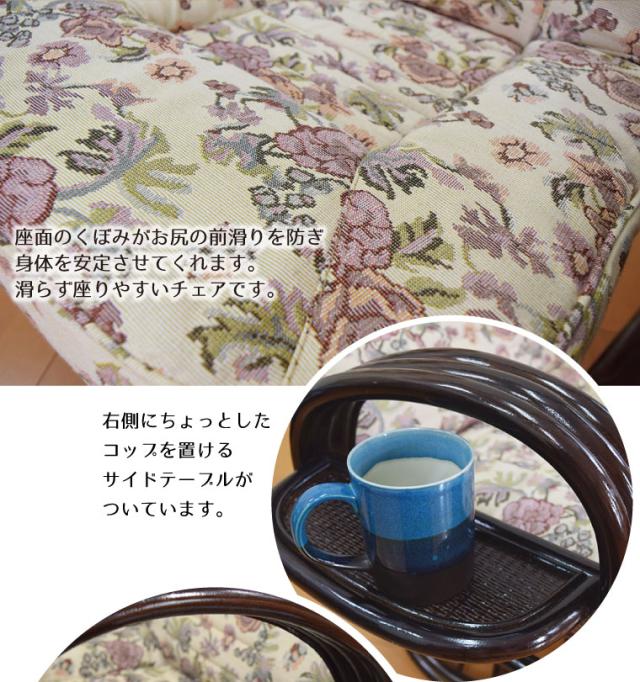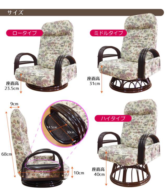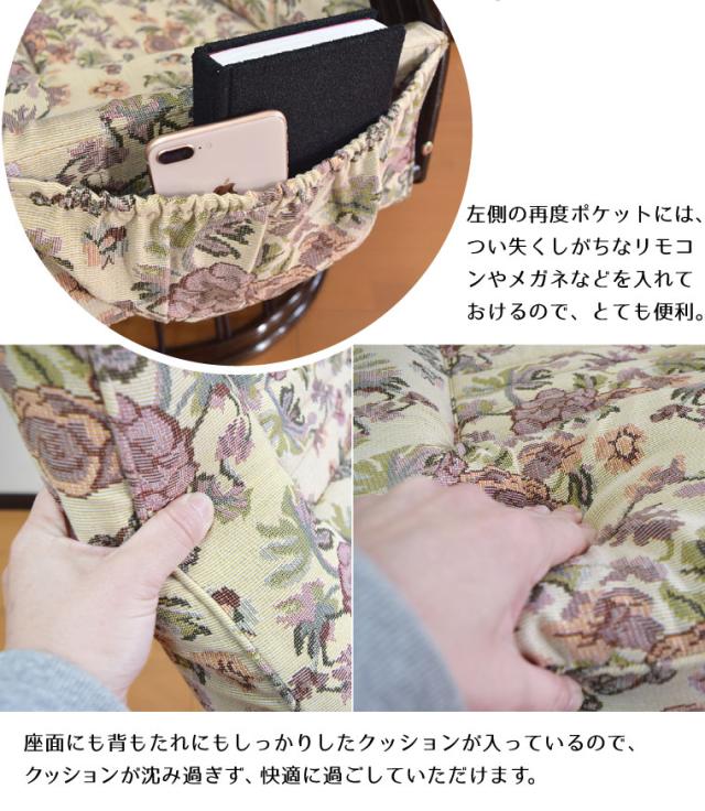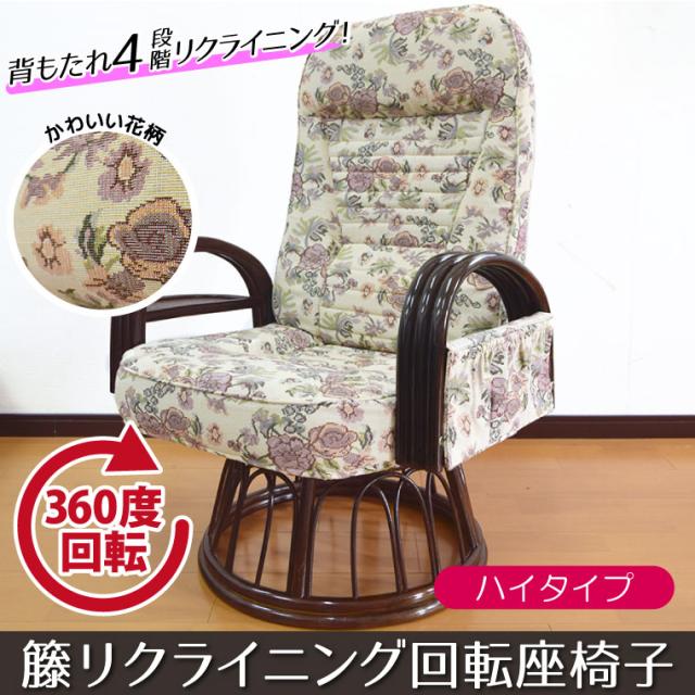 座椅子 回転 肘掛け 在宅勤務 肘付き 木製 籐 ハイタイプ 花柄 籐リクライニング回転座椅子 送料無料