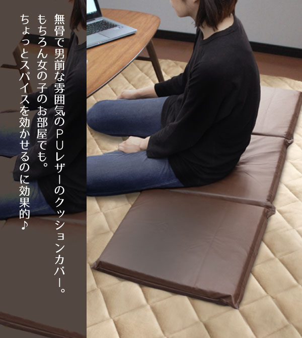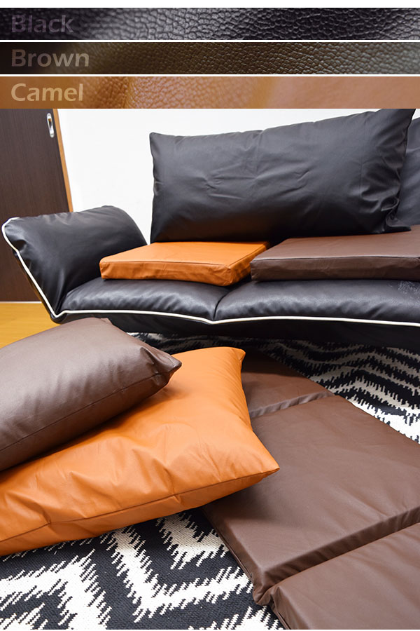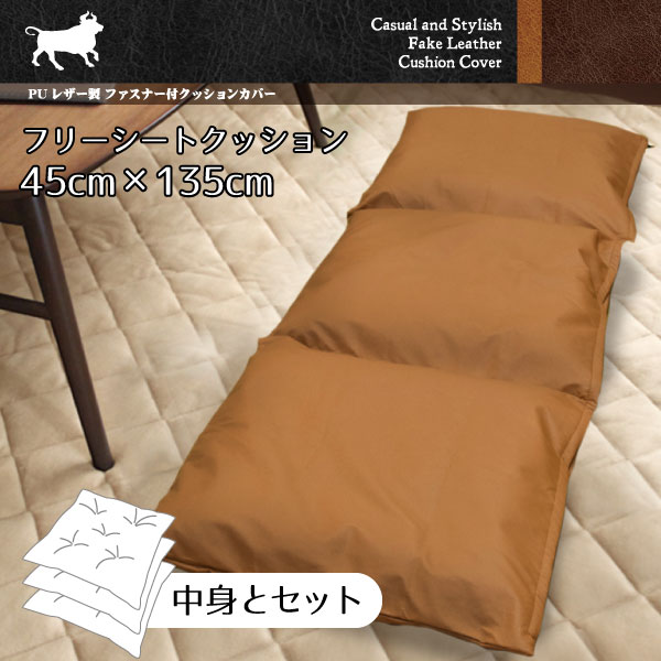 クッション 中身&カバーセット PUソフトレザーフリーシートクッション 在宅勤務 3連シートクッション キャメル 約45cm×135cm 合皮