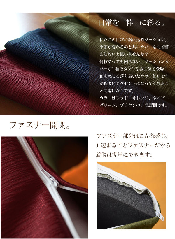 シンプルならがも生地に独特に風合いを持たせ、無地だけど小技のきいたオシャレなクッションカバー&中身のセットです。