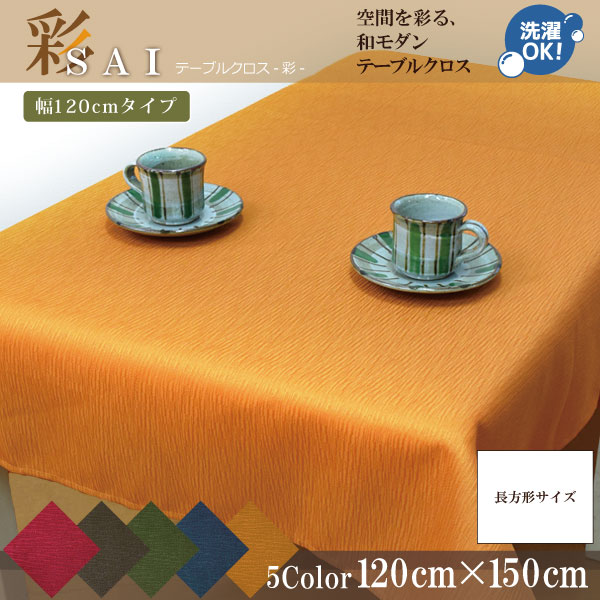 テーブルクロス 和風 おしゃれ 在宅勤務 紬風生地 彩 120×150cm オレンジ 布 洗える 洗濯可 エスニック 新生活