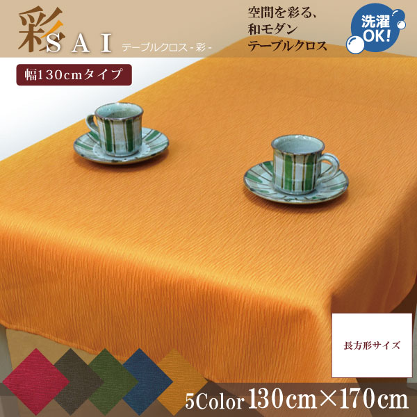 テーブルクロス 和風 おしゃれ 在宅勤務 紬風生地 彩 130×170cm オレンジ 布 洗える 洗濯可 エスニック 新生活
