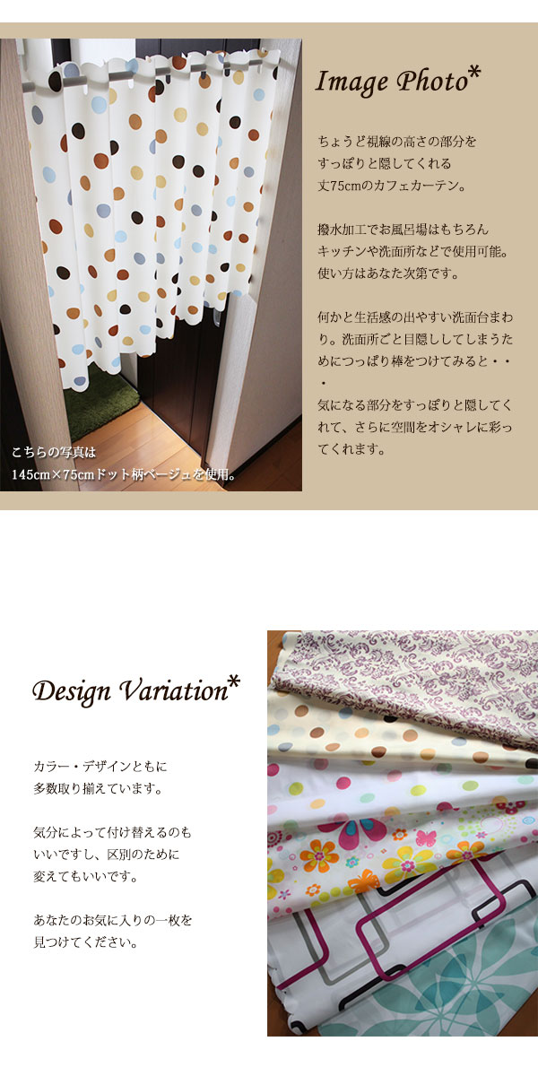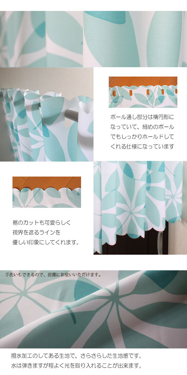 カフェカーテン 撥水加工 約145×75cm リーフ柄 ブルー 在宅勤務