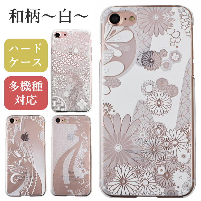 白色の和柄デザインをハードケースに印刷したスマホケースです。