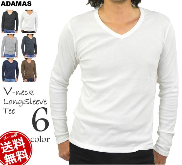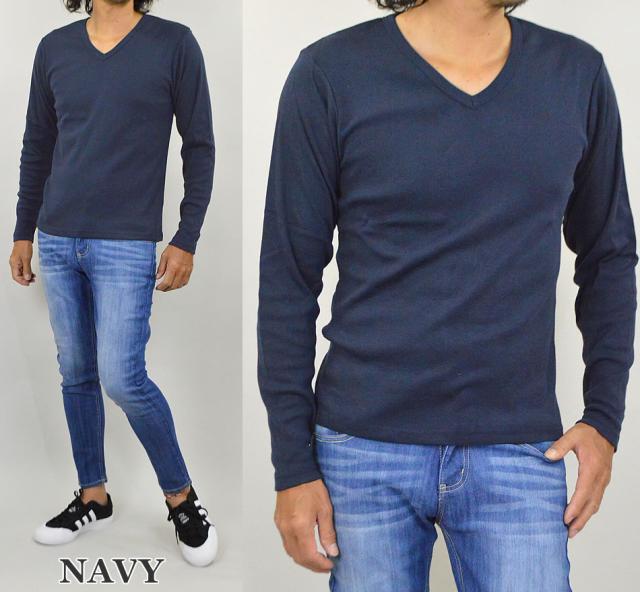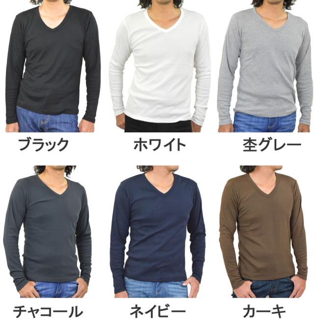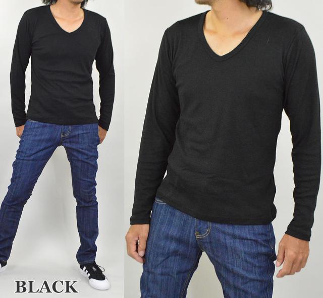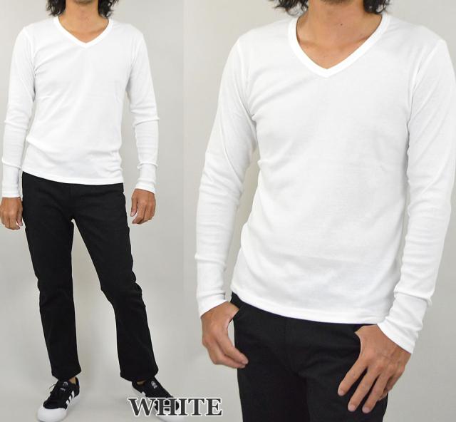 Tシャツ メンズ Vネック 長袖Tシャツ メンズ 長袖 無地 ロンT カットソー コットン 綿 ポリエステル 白 黒 メール便 送料無料