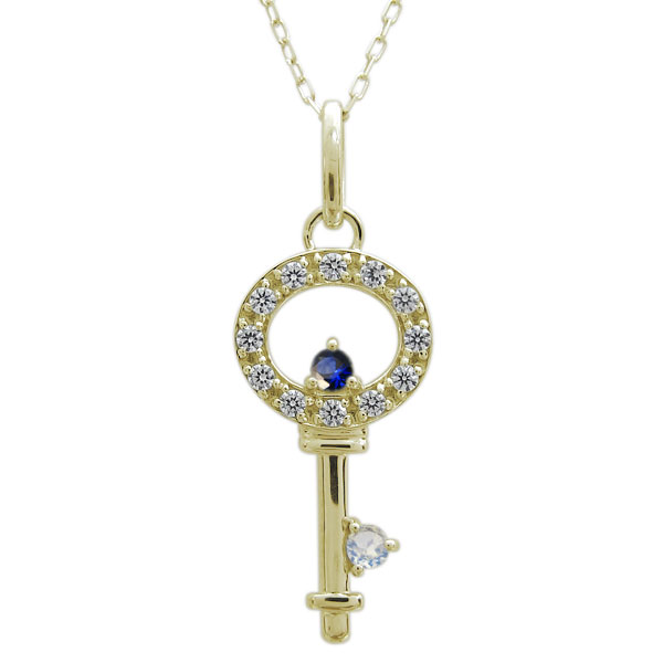 サファイアペンダント 10金 鍵 キーモチーフ ネックレス レディース