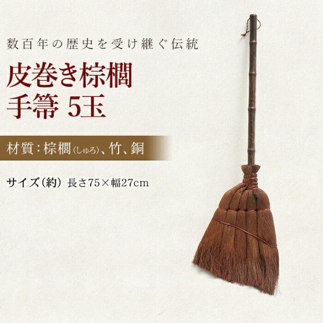 箒 ほうき ホウキ 皮巻き棕櫚 手箒 5玉 棕櫚箒 ほうき 室内 シュロ しゅろほうき ホウキ おしゃれ 和歌山県 紀州伝統デザイン棕櫚箒