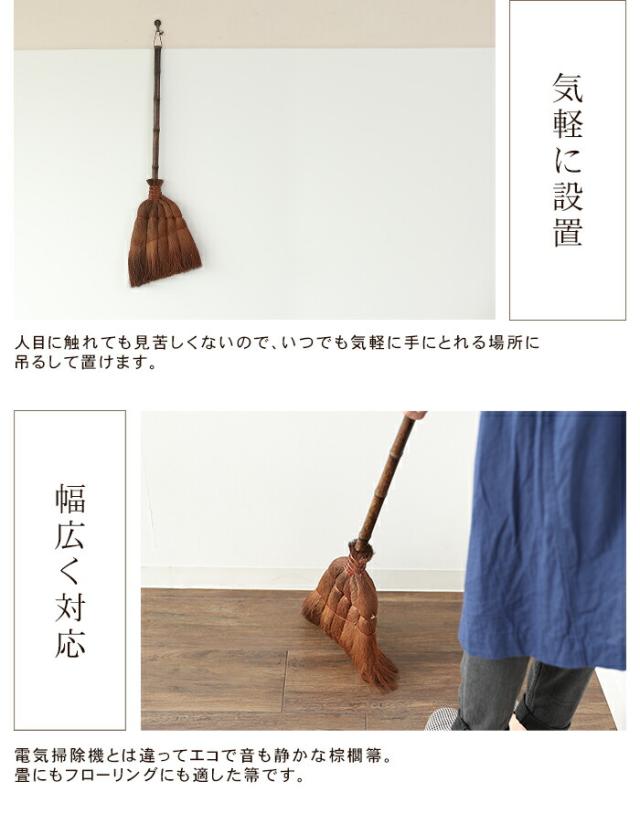 棕櫚箒は数百年の歴史があるといわれる日本の伝統的な箒で、和箒の中でも棕櫚箒は耐久年数が長く、丈夫で長持ちするといわれています。