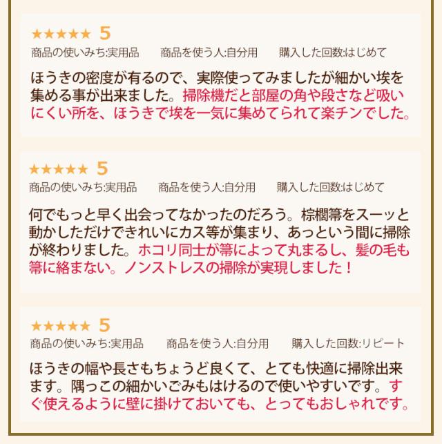 - 掃除機やモップもいいけど、箒じゃないと…という場所もあり、気になっていた箒です。 安価な箒でもいいけど、長く使えるように…と、やっと購入 ちょっとした際に、サッと掃けるので、やっぱり購入してよかったで...