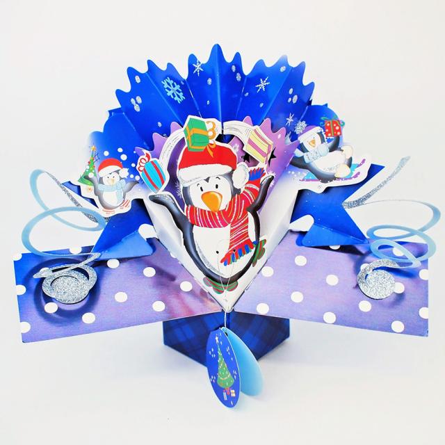 商品名:セカンドネイチャー SECOND NATURE ポップアップカード ペンギン ブルー 青 ホワイト 白