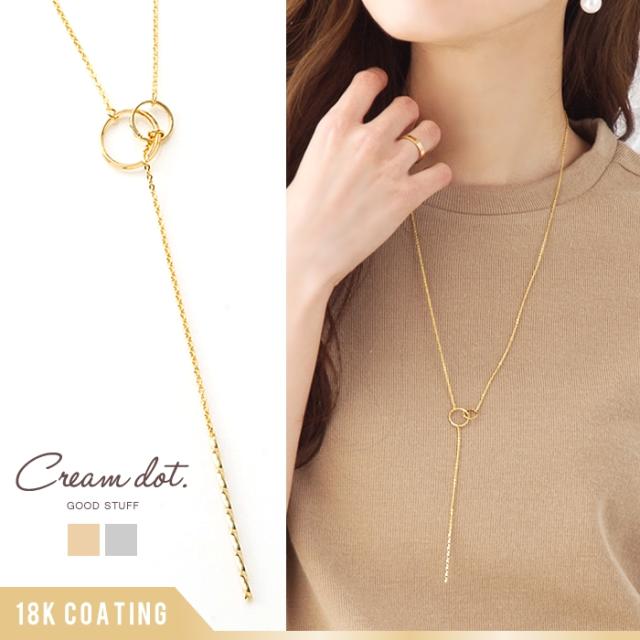 重なり合うダブルリングが知的な雰囲気を放つ、Y字ロングネックレス。