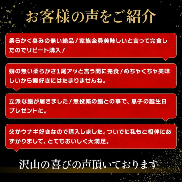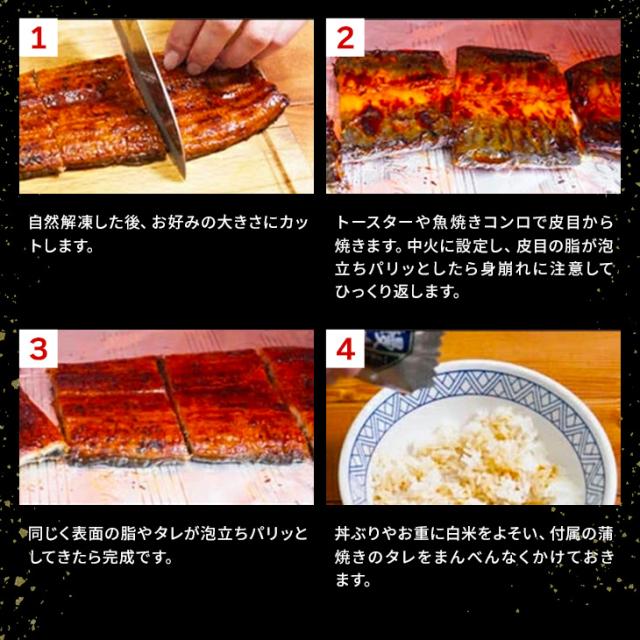 原材料:うなぎ(鹿児島県)、しょうゆ(大豆・小麦を含む)、砂糖、ぶどう糖果糖液糖、発酵調味料、水あめ、うなぎエキス(大豆・小麦を含む)