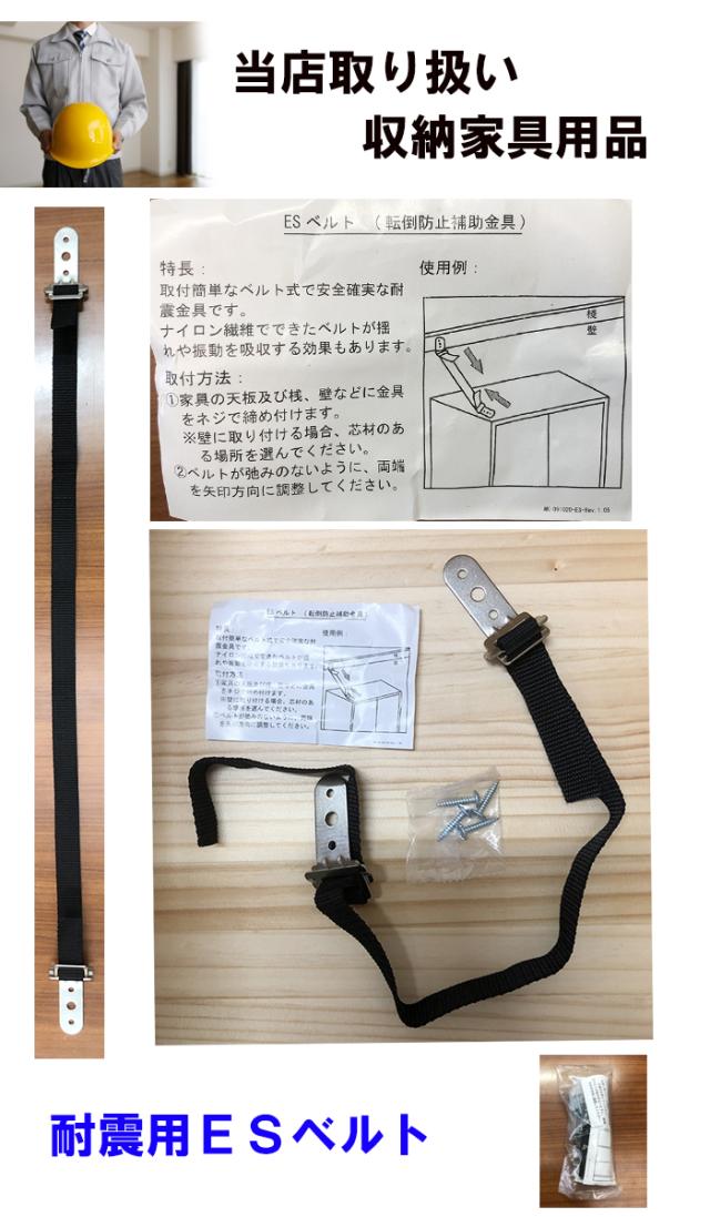 耐震ベルトとして、家具メーカーで一般に使用しております家具耐震強化用の商品でございます。備えが大事です。今お持ちの家具などにぜひご利用ください。