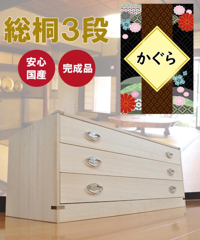かぐら 3段 | 幅99cm 奥行44cm 高さ39cm 日本製 桐箱 【 総桐 衣装ケース チェスト おしゃれ 国産 桐タンス 桐箪笥 着物収納 和たんす 和箪笥 箪笥 和 桐ダンス 押入れ収納 引き出し 収納ケース 収納棚 大川家具 着物
