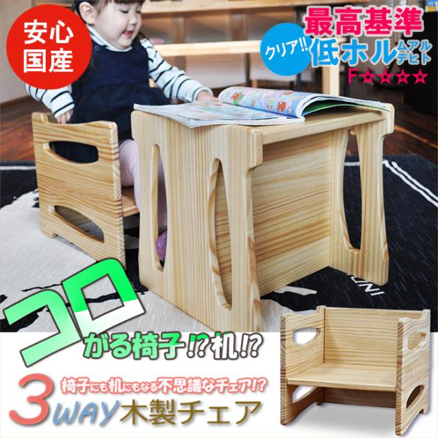 幅33.5cm 奥行33cm 高さ30cm キッズチェア 3WAY 子供 椅子【コロコロチェア 木製 国産 日本製 入園祝い ベビーチェアー 子供用いす 子供用 チャイルド 木製イス ベビーチェア テーブル こども 食事 勉強 おしゃれ 郵