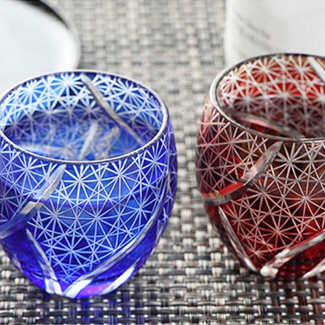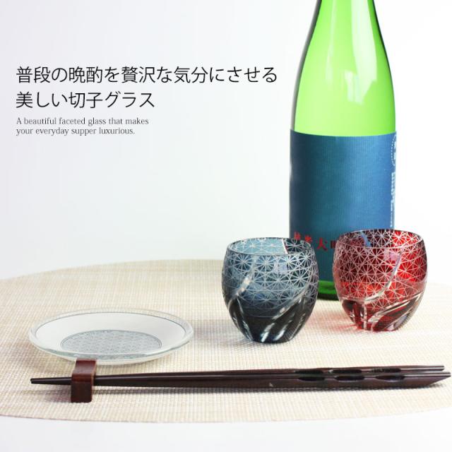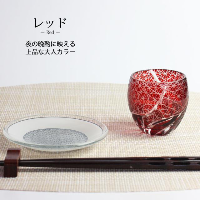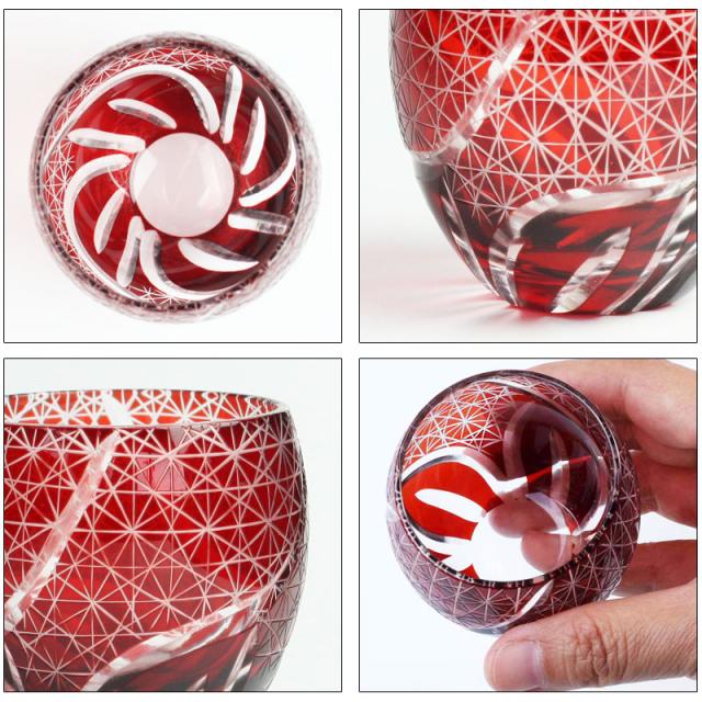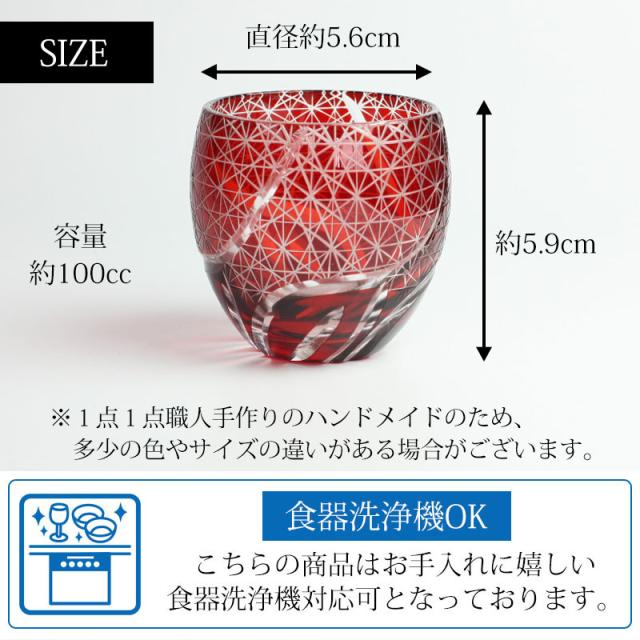 材質 硝子切子 ぐい呑み レッド 切子グラス お猪口 ぐい飲み盃 おちょこ キリコ おしゃれ 菊つなぎ 食洗機対応