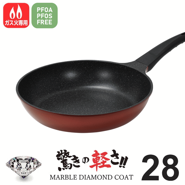 フライパン 28cm ガス火 炒め鍋 28センチ ダイヤモンド マーブル コーティング 大きい 大き目 中華鍋 ガス おすすめ 単品 セット でお得 おしゃれ くっつかない 取っ手 一体型 大型 大容量 焦げ付きにくい PFOA PFOS フリー EX