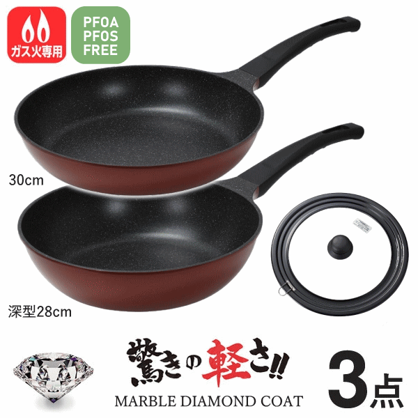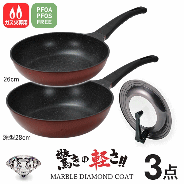 【新しくなりました】フライパン セット 深型 3点 セット 26cm 28cm ガス火 蓋付き フライパンセット 炒め鍋 いため鍋 中華鍋 調理器具セット おしゃれ くっつかない 焦げ付きにくい 取っ手 一体型 PFOA PFOS フリー EX