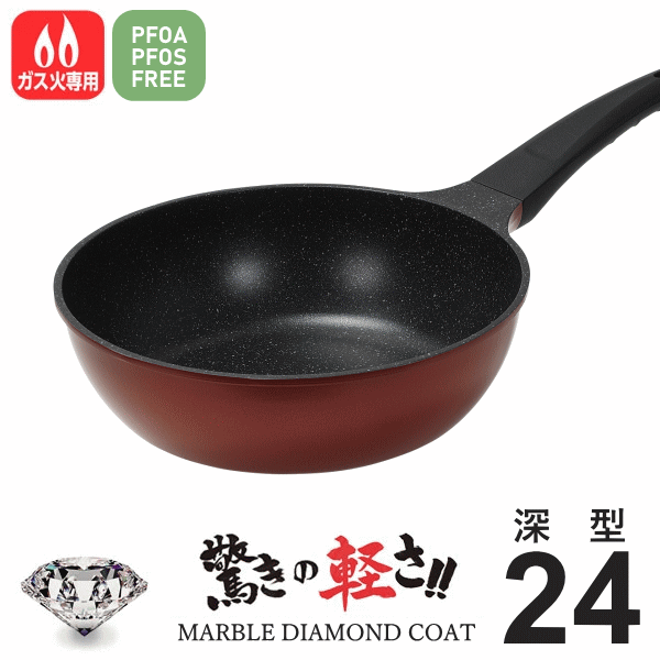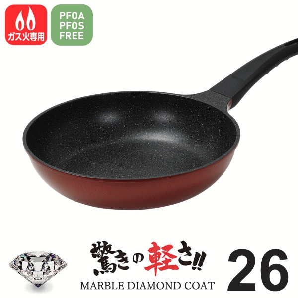 | 外面セラミック加工 / 内面マーブルコート×ダイヤモンドコート 軽くて丈夫で使いやすい超軽量フライパン。 ハンドル部分が握りやすく、熱変形に強いアルミダイキャスト製になります。 一体成型で洗いやすいハンドル取り付け部です。 汚れが落ちやすくお手入れ簡単/外面セラミック加工 キズに強くこげつきにくい/内面マーブルコート×ダイヤモンドコート ふっ素コーティングは(マーブルコート×ダイヤモンドコート) 耐摩耗性試験50万回クリア※JIS S 2010に準ずる(塗料メーカー調べ) 金属ヘラも使用可能です。※角の丸いなめらかなものをご使用ください。 ご注意:オーブン・電子レンジには使用しないでください。 つけ置き洗いや食器洗い乾燥機には使用しないでください。 |