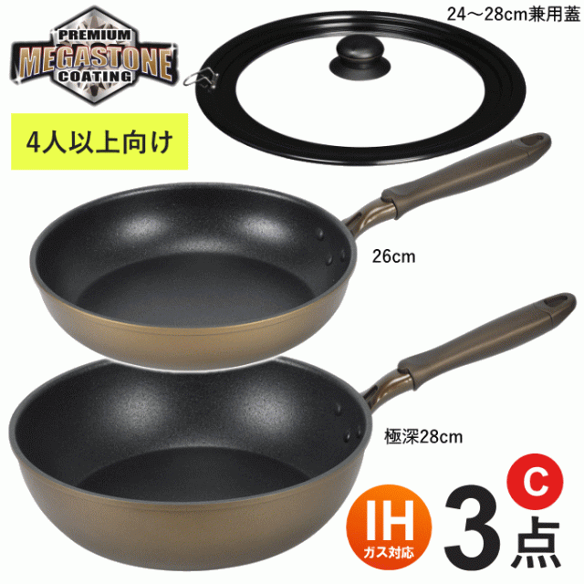 IH対応 ロングライフメガストーンフライパン 3点Cセット