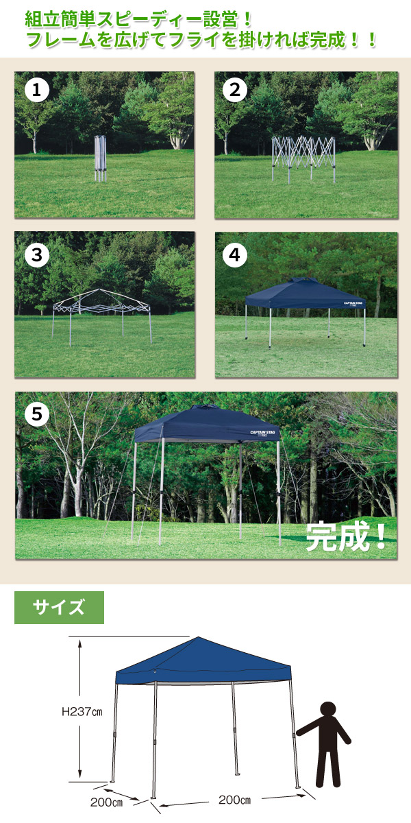 CAPTAIN STAG[キャプテンスタッグ] クイックシェードDX 200UV-S キャスターバッグ付 200×200cm M-3273