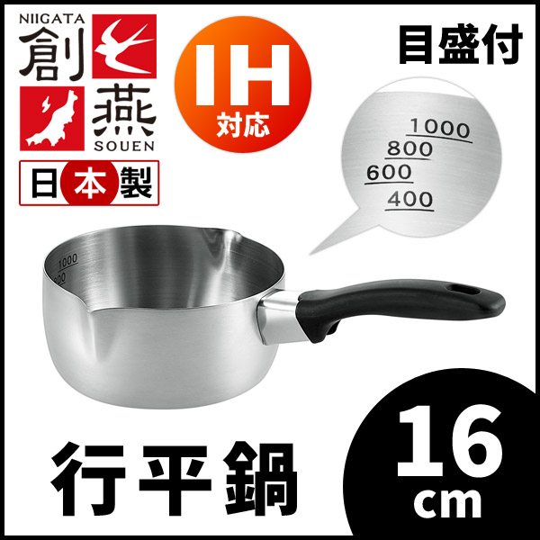 IH対応 日本製 創燕 行平鍋 16cm SE-05 目盛付き 安心の日本製・SG認定製品 雪平鍋