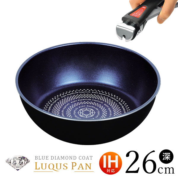フライパン 深型 26cm 取っ手が取れる 単品 セット でお得 ihフライパン ih パール金属 マルチパン 大きい 大きめ ih対応 ガス火 おすすめ 直火 26センチ くっつかない 取っ手の取れる ルクスパン 深め 深い 炒め鍋