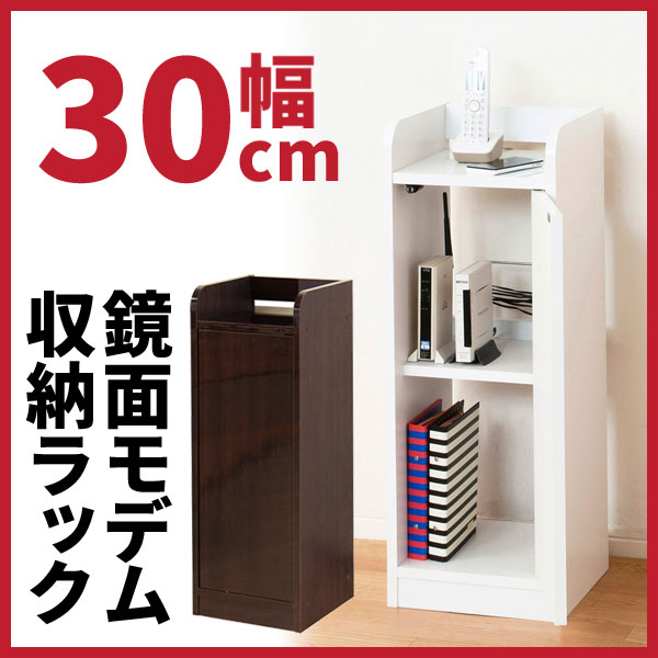 鏡面仕上げ モデム収納 ラック スリム 幅30cm 配線収納 便利収納 ルーター収納 wifi ラック 収納 光電話 ファックス台 コンセント収納 ケーブルボックス コードケース タップボックス タップ収納 電源タップ 新生活 クロシオ