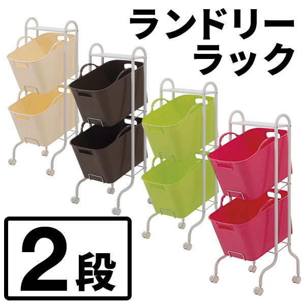 FB ランドリーラック 2段 FB8246 バスケット付き ランドリーバスケット グリーン ブラウン ピンク