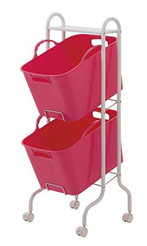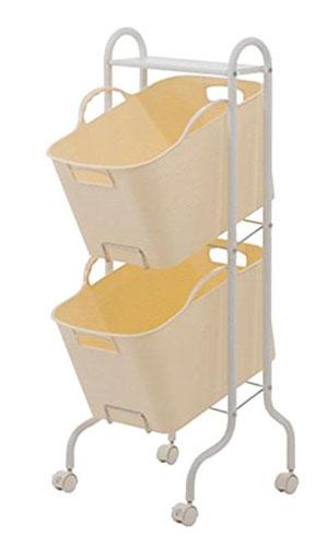 バスケットが2つ付いたランドリーラックです。グリーン、バニラ、ブラウン、ピンクの4色からお選びいただけます。