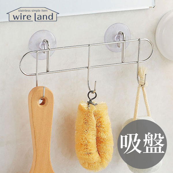吸盤式フック 3本掛け wire land ワイヤーランド WL-006 フック 吸盤 ふっく 引っ掛け 壁 鏡 吸盤付き ステンレス シンプル