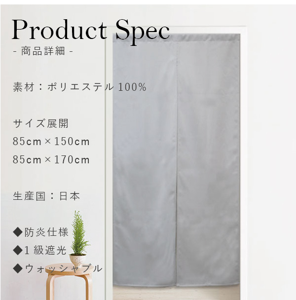 のれん 日本製 防炎加工 無地 1級遮光 約85×150cm ブラック 在宅勤務 ロイヤル