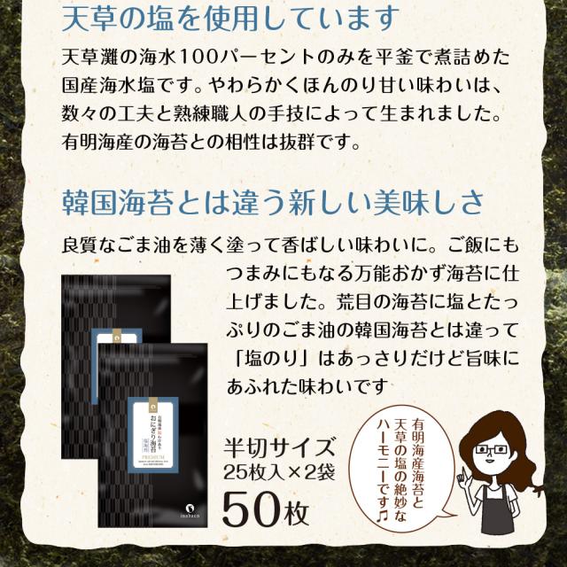 - ここの海苔を食べてから他の海苔には見向きもしなくなりました!とても美味しい海苔!!を感じられるのが大好きです。海苔の不作で今はとても貴重品ですよね。お店の対応もとても良くて他にもハマっている商品が沢山...