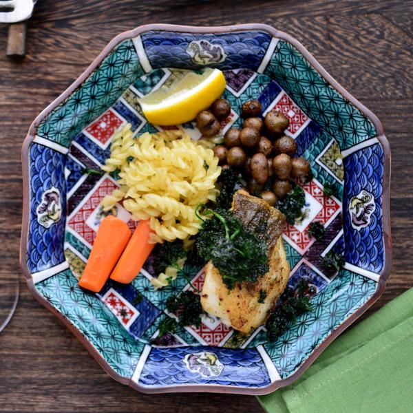 末広がりの幸せを表す「八角皿」。九谷焼の超有名作家、なんと「澤田富雄」先生に石畳(いしだたみ)の絵柄を大胆に描いていただいた渾身の一枚!