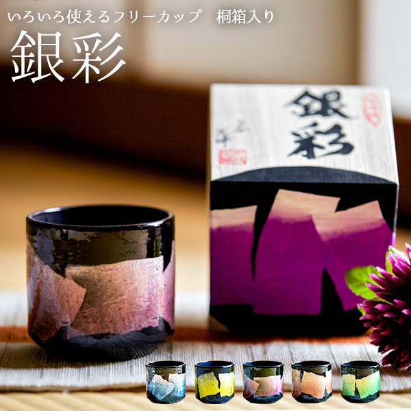 「送料無料」 九谷焼 色いろカップ 銀彩 5色から選択 1個 ( 和窯 色いろカップ あすつく 木箱名入れ有料 退職祝い 定年 焼酎グラス )