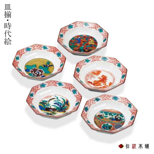九谷焼 皿揃 時代絵 3.2号 5枚セット ( 時代絵 退職祝い 定年 陶器 小皿 豆皿 醤油皿 食器 九谷焼 結婚 出産 内祝い 引き出物 金婚式 )