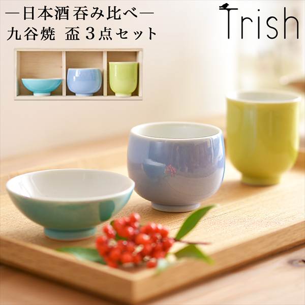 九谷焼 Trish ぐい呑 盃 呑み比べ 3点セット 木箱入り 「即日発送対応」 ( あすつく 木箱名入れ有料 ぐいのみ 盃 酒器 セット 日本酒 )
