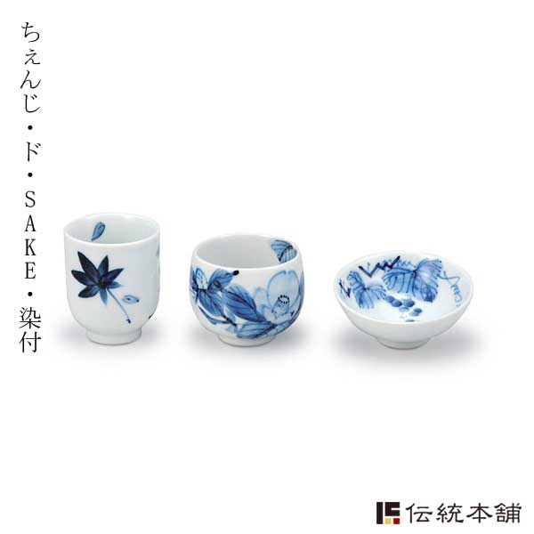 九谷焼 ちぇんじ・ド・SAKE 染付 「即日発送対応」 ( あすつく 木箱名入れ有料 退職祝い 定年 ぐいのみ 盃 酒器 猪口 日本酒 )