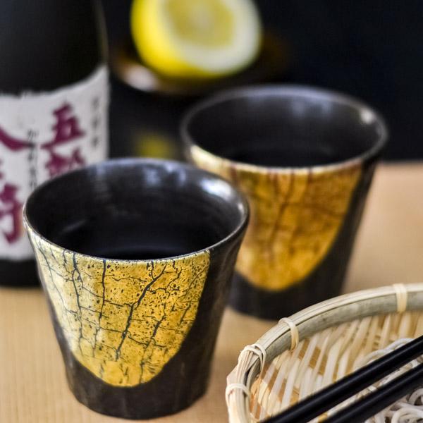 「送料無料」 九谷焼 焼酎カップ 金箔彩 ペア ( 退職祝い 定年 焼酎カップ ビールカップ 保温 セット 九谷焼 結婚 出産 内祝い )