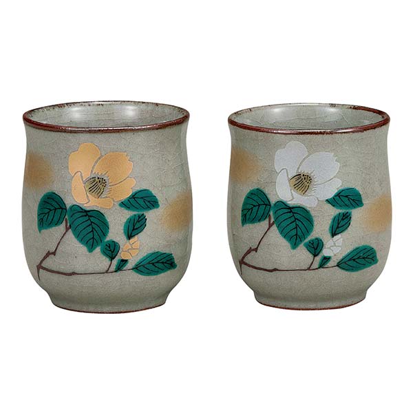 上質な九谷焼の夫婦湯呑は、山茶花の優美なデザインが心を和ませます。手に馴染む滑らかな触感とともに、お茶の時間を格別なものに。大切な人とのひとときを、深い日本の伝統で彩ります。それぞれ異なる風合いを持ち、使うたびに新たな魅力を感じさせる、特別なペアです。