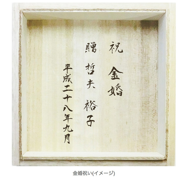 木箱への手書きの名入れは特別感があり、とても見栄えする仕上がりになります。法人の大切な贈り物。親族など大切な方への記念品におすすめの名入れサービスです。※当店の「木箱入り」商品と一緒にカートに入れて注文して下さい。