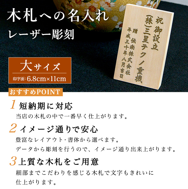 当店で最も短納期の名入れ木札 【セット購入専用】木札(大) 名入れ レーザー彫刻 縦横・選べるレイアウト 6.8cm×11cm 1枚 ( )