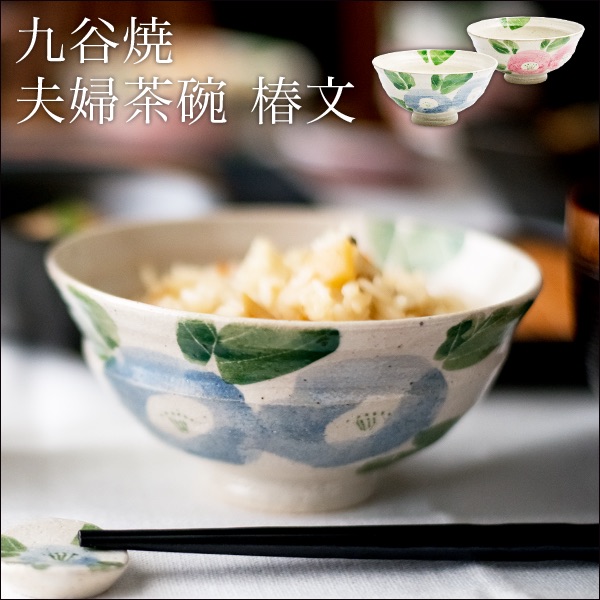 九谷焼 夫婦茶碗 椿文 ペア ( 退職祝い 定年 夫婦茶碗 ご飯茶碗 陶器 ギフト プレゼント セット 九谷焼 結婚 出産 内祝い 引き出物 )