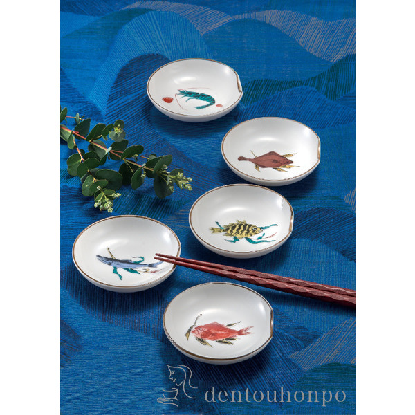 「送料無料」 九谷焼 箸置小皿揃 魚文 3号 ( 退職祝い 定年 和食器セット お皿 揃える 食器 和食 九谷焼 結婚 出産 内祝い )