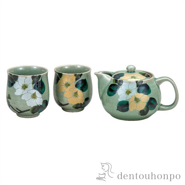 九谷焼の技が光る、高貴な金銀椿の茶器セット。優雅なデザインで、特別なひとときを演出します。一杯の茶を楽しむたび、心安らぐ静寂な時間を。家族や友人との和やかな団欒に、格別の華を添える逸品です。