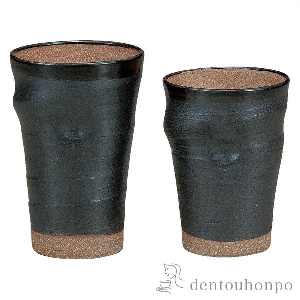 九谷焼 ペアビアカップ 黒釉焼〆 ( 和窯 awatana 退職祝い 定年 タンブラー 陶器 ビアカップ お祝い 人気 セット 九谷焼 結婚 出産 )